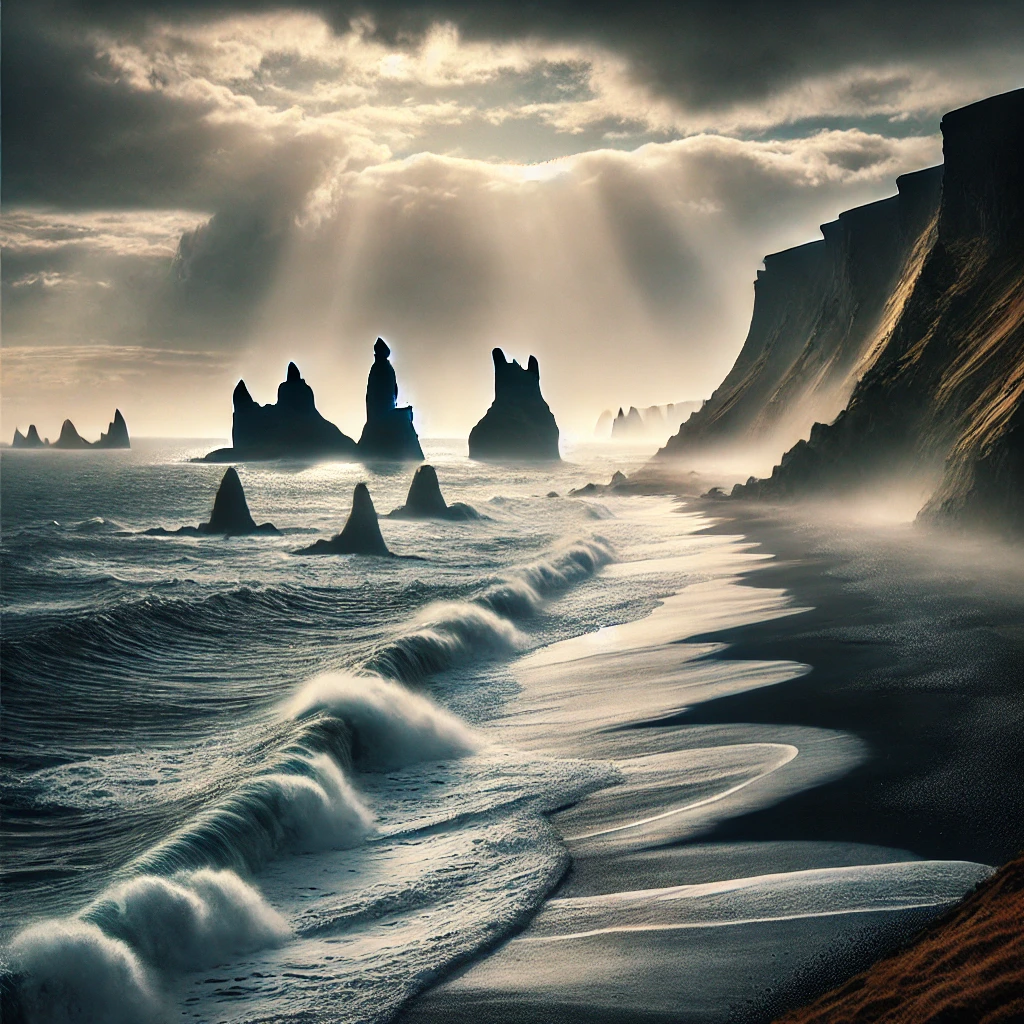 - 레이나르피야라 해변: 검은 모래와 독특한 바위 형성으로 유명한 해변입니다. 이곳의 검은 모래 해변과 바위들은 독특한 자연 경관을 이루며, 아이슬란드에서만 볼 수 있는 특별한 풍경을 제공합니다.