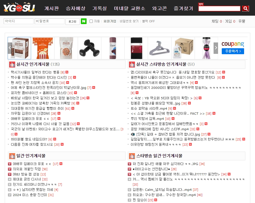 와이고수(ygosu)는 대한민국에서 인기 있는 온라인 커뮤니티 중 하나로, 다양한 주제의 게시판과 활발한 사용자 참여가 특징입니다. 특히 게임, 스포츠, 경제, 주식, 유머, 연예 등의 분야에서 많은 정보와 의견이 교환됩니다. 와이고수는 사용자 간 자유로운 소통을 중시하는 곳으로, 게시글과 댓글을 통해 서로의 생각을 나누며 다양한 주제에 대해 깊이 있는 논의가 이루어집니다.